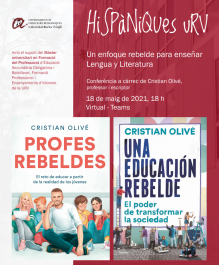 Tenemos el placer de anunciar la conferencia del profesor y escritor Cristian Olivé: «Un enfoque rebelde para enseñar lengua y literatura», que tendrá lugar el martes 18 de mayo, a las 18 h, vía Microsoft Teams.